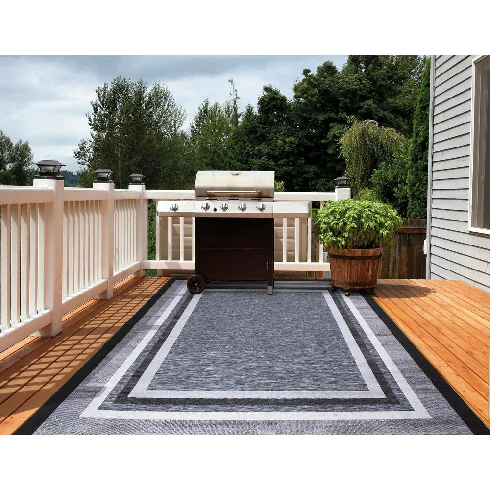 - Polypropylene woven backing (jute free backing as a true outdoor rug), works well for inside or outside setting