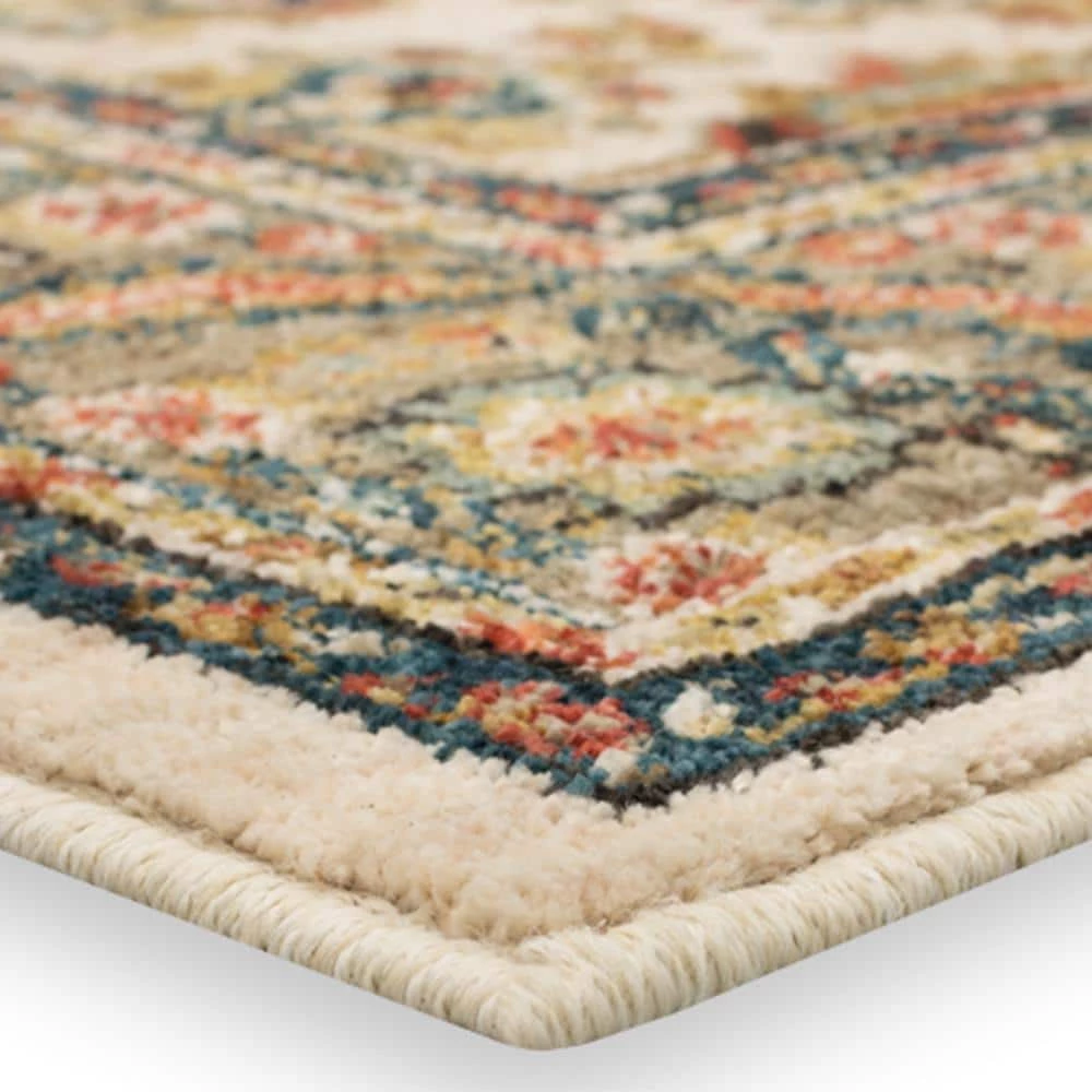 The Mariah woven area rug features a traditional pattern with ornate detailing in rich Mediterranean colors, including aquamarine, spice, gold, charcoal, taupe, citron, cream and tobacco. Its stain and fade resistant properties make it a great choice for busy families. Made of 100% polyester, this rug is sumptuously soft and will add an element of style to any living space.