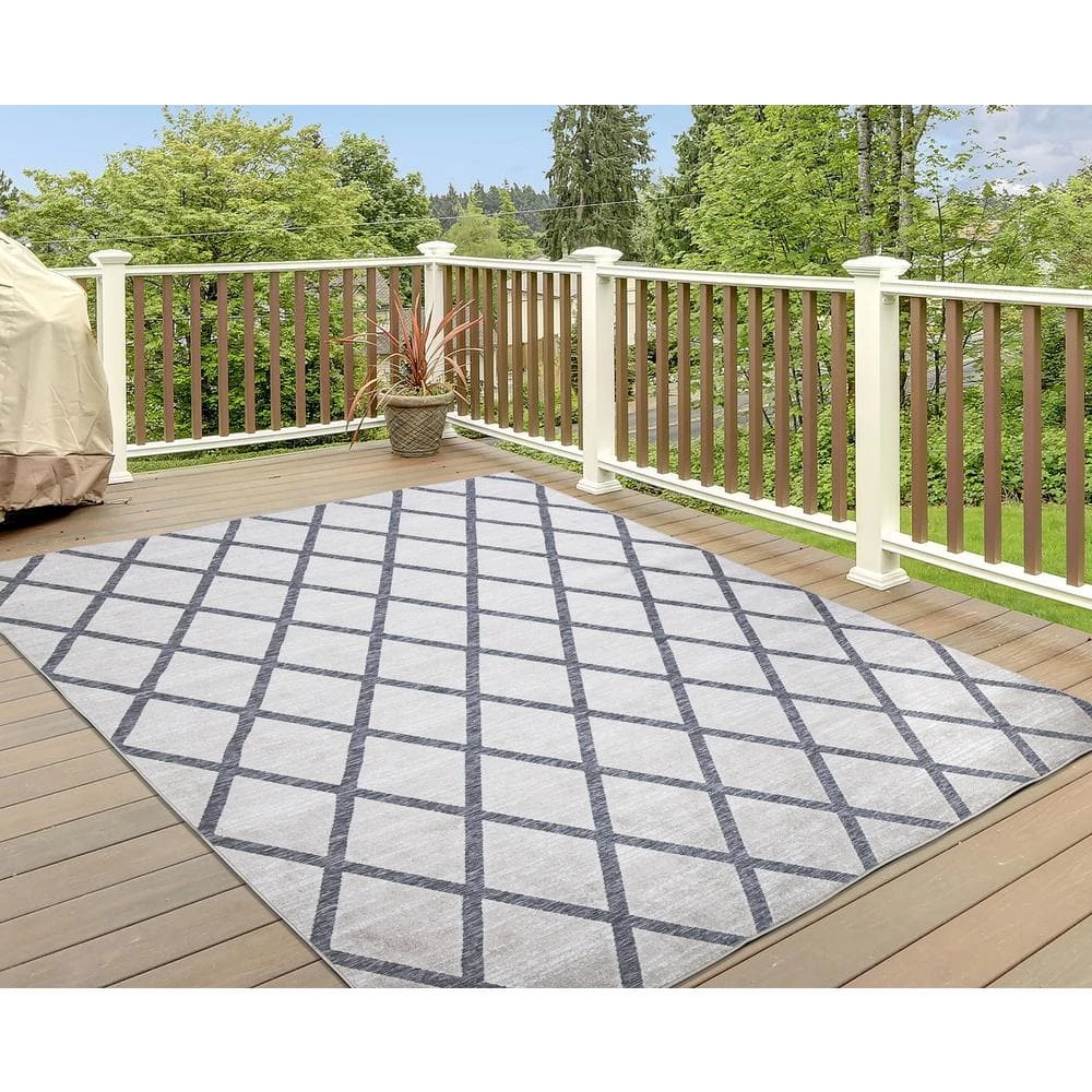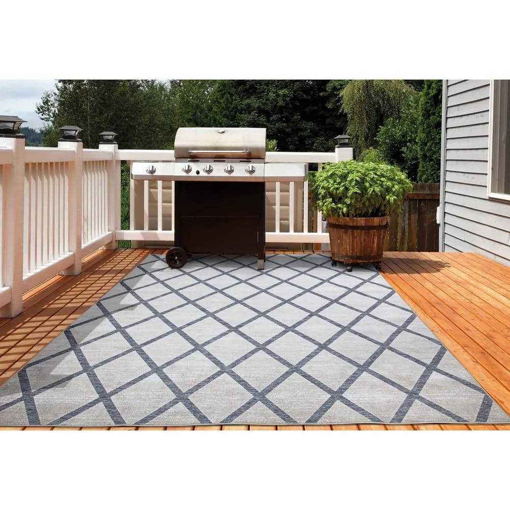 Loomed rug with Trellis pattern, indoor/outdoor