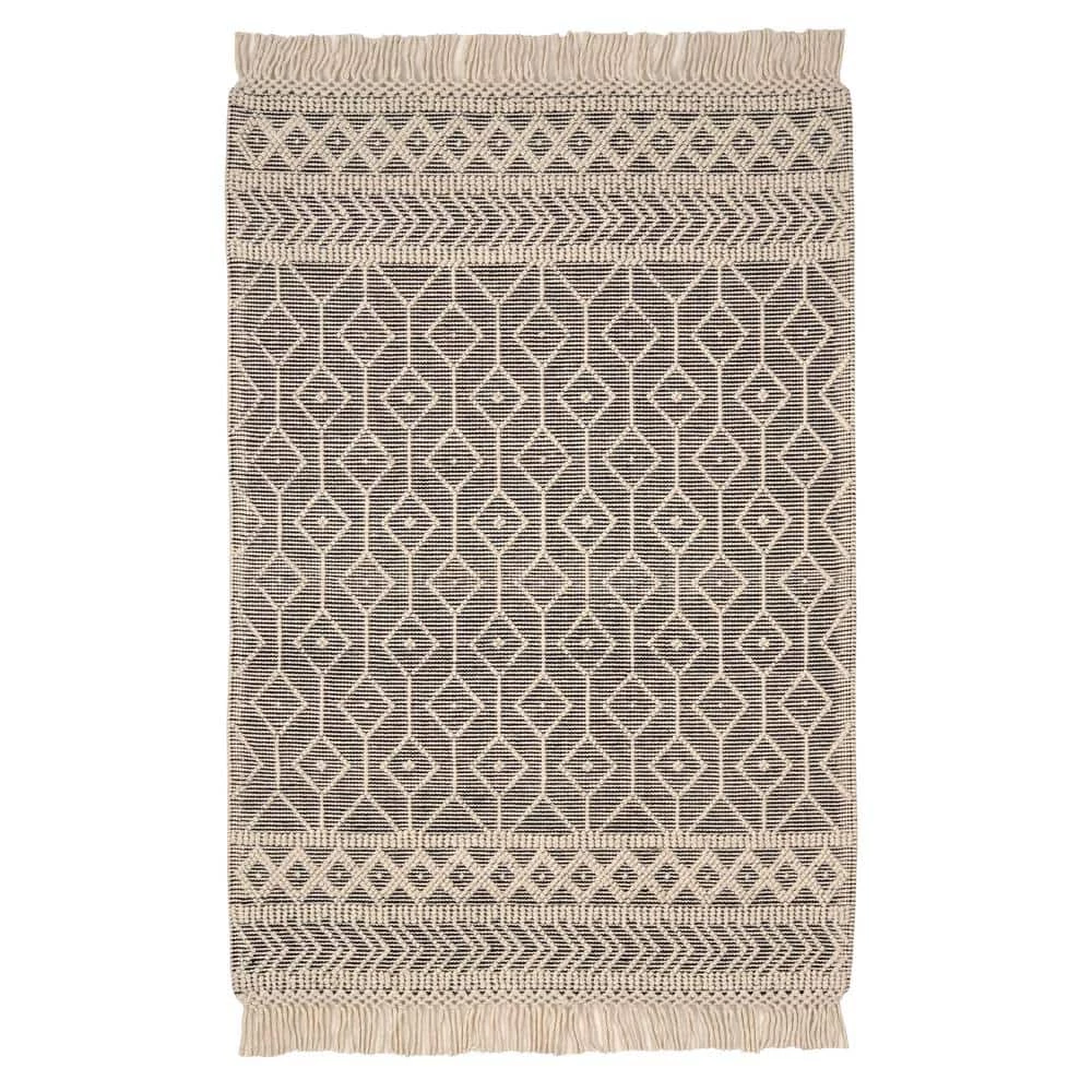 Soft woolen yarns of black and white create a modern linear geometic pattern that gives the Winchester Collection Area Rug a unique style. Hand woven in India from 100% Wool this area rug is both modern and transitional and easily decorated around. The neutral color combination and subtle pattern makes this rug ideal for any space.
